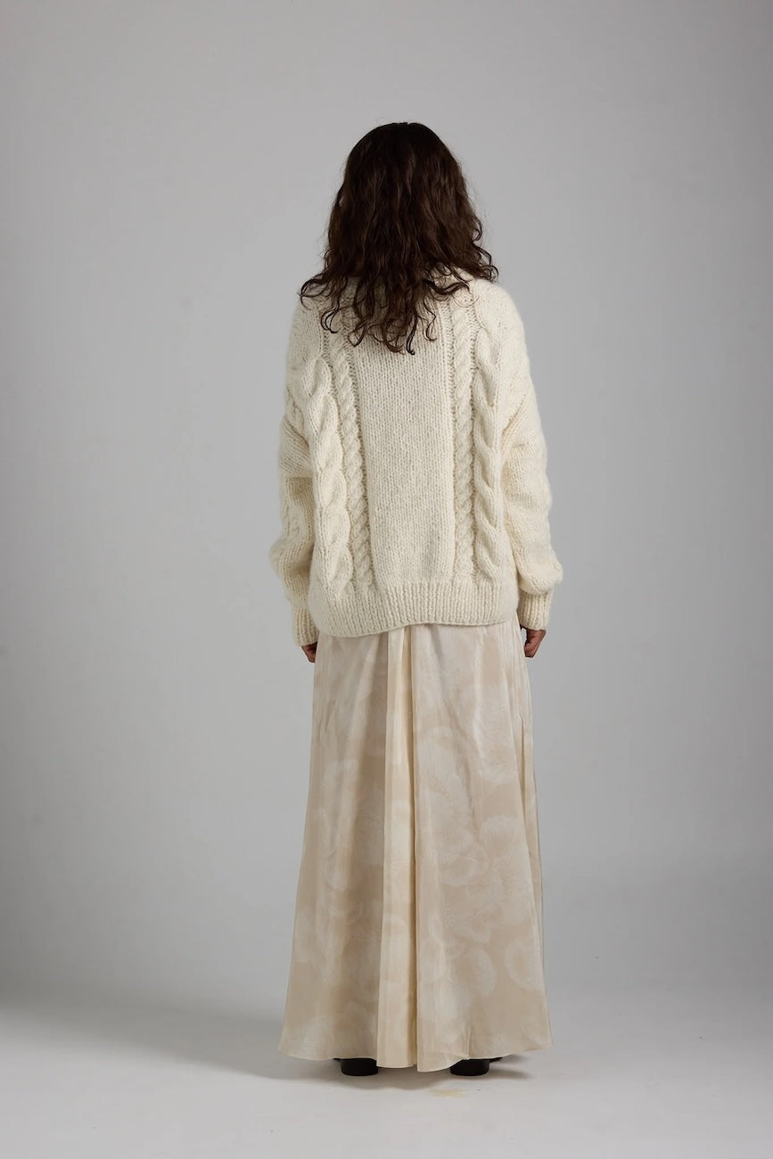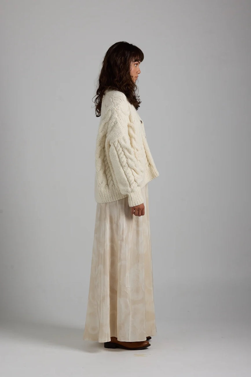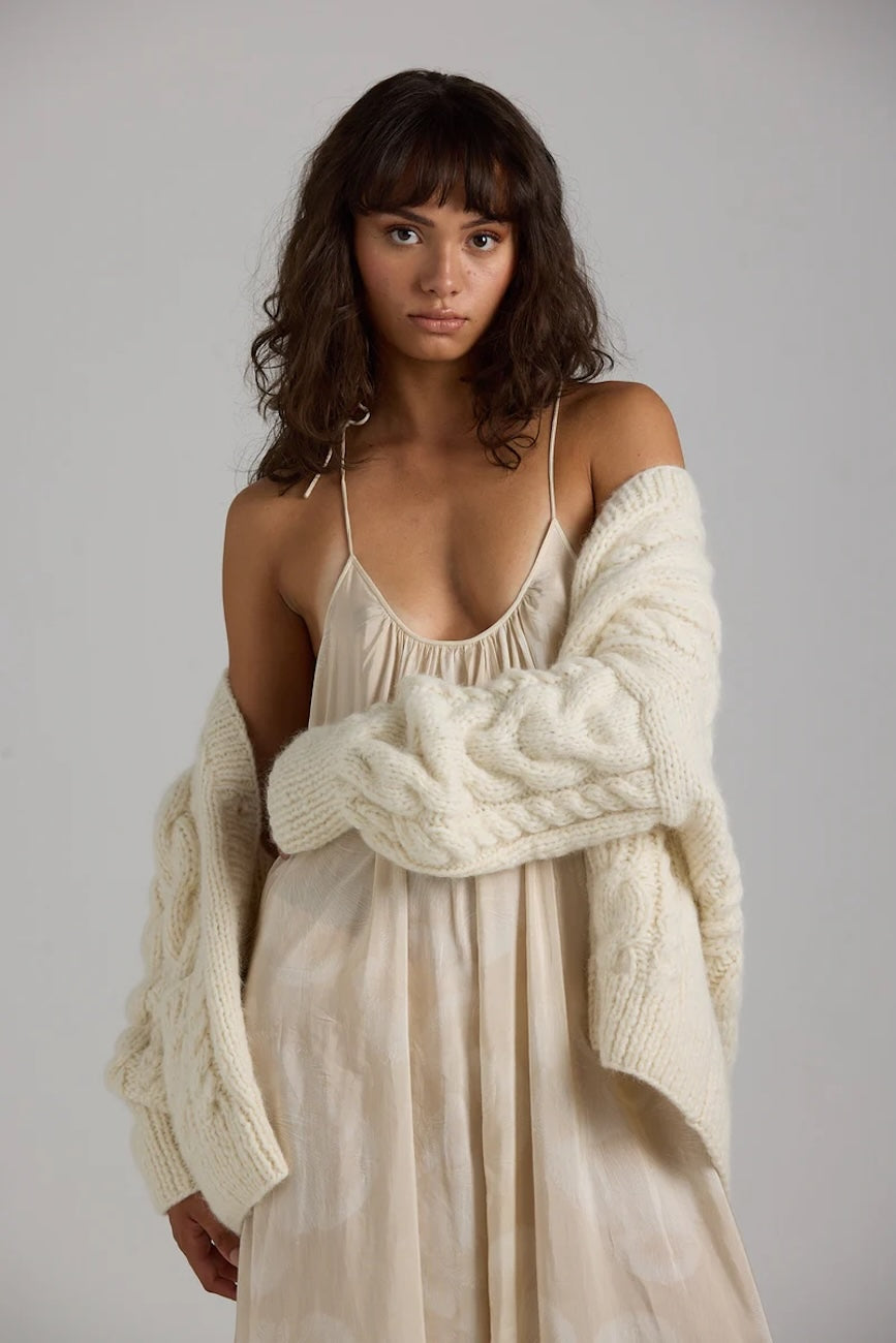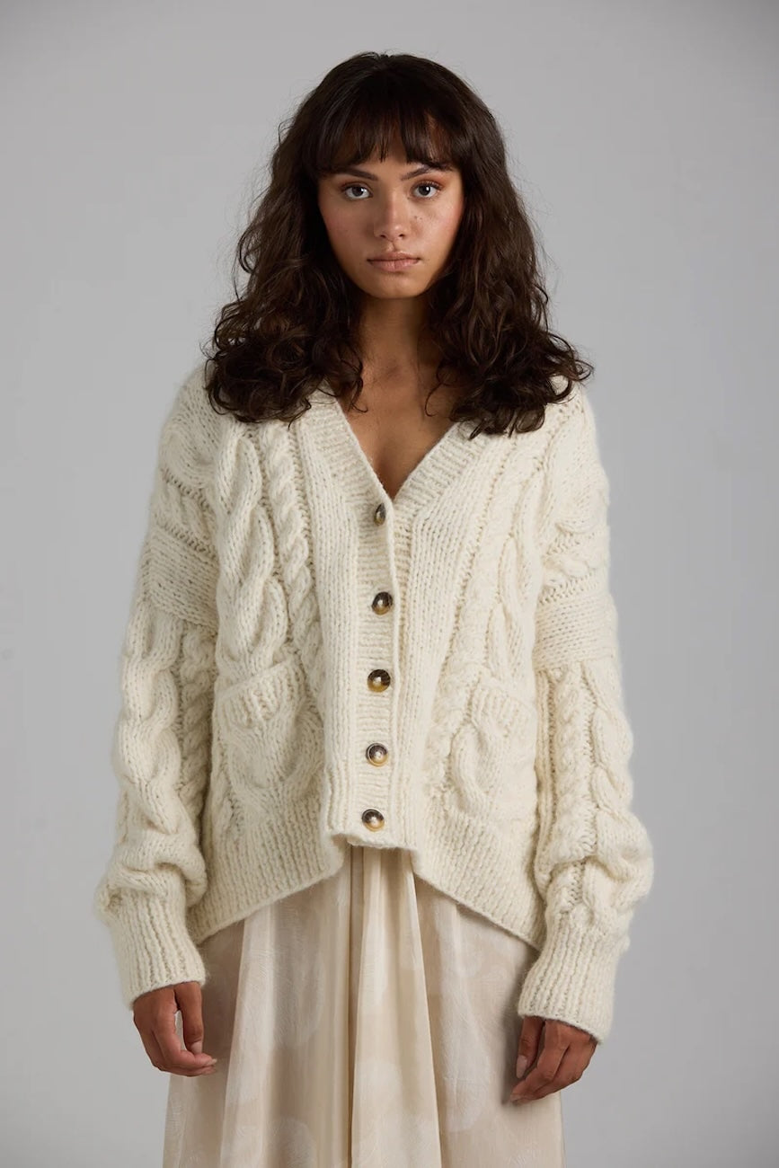 Paris is a timelessly elegant, cable stitch cardigan—crafted for comfort and elevated in design. Meticulously hand-knitted from the finest 100% Baby Alpaca yarn, it features a relaxed, oversized silhouette with classic front button detailing. Every stitch is a tribute to slow, intentional craftsmanship.